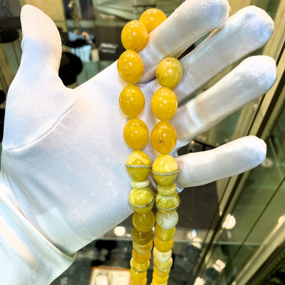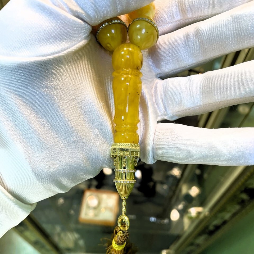 Четки выполнены на заказ из 33х глянцевых бусин натурального Калининградского янтаря.