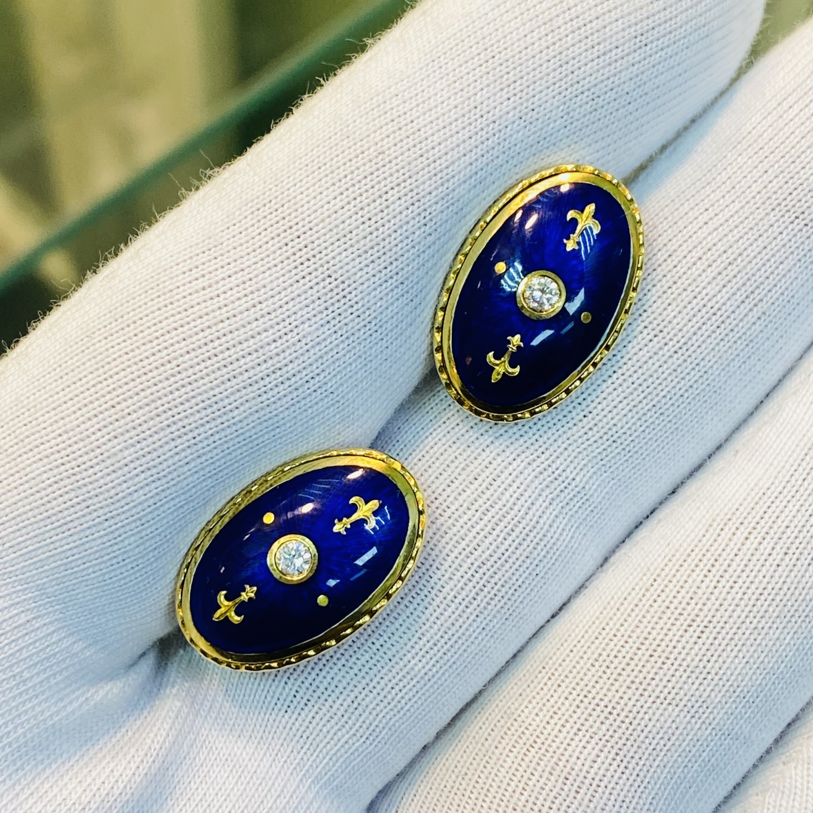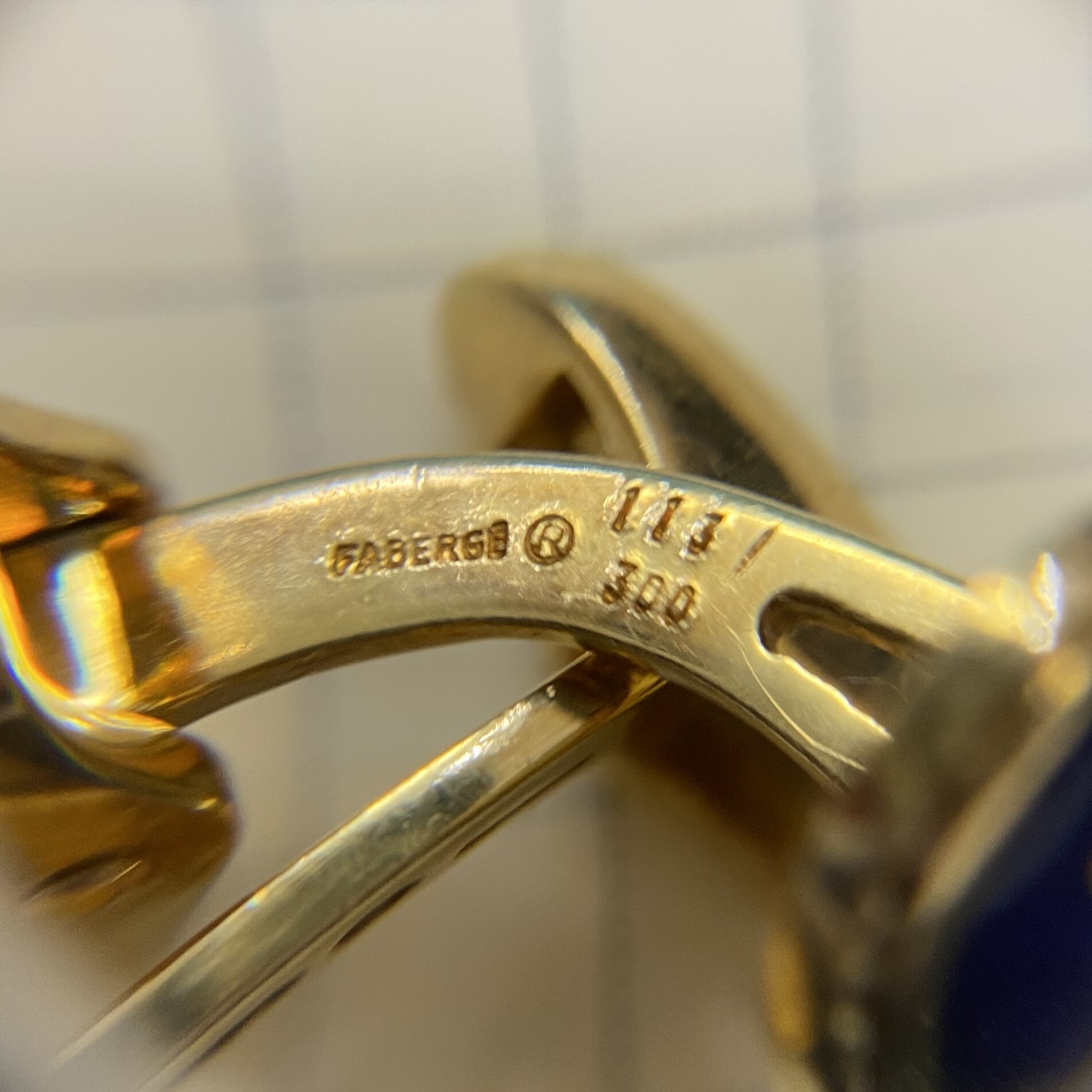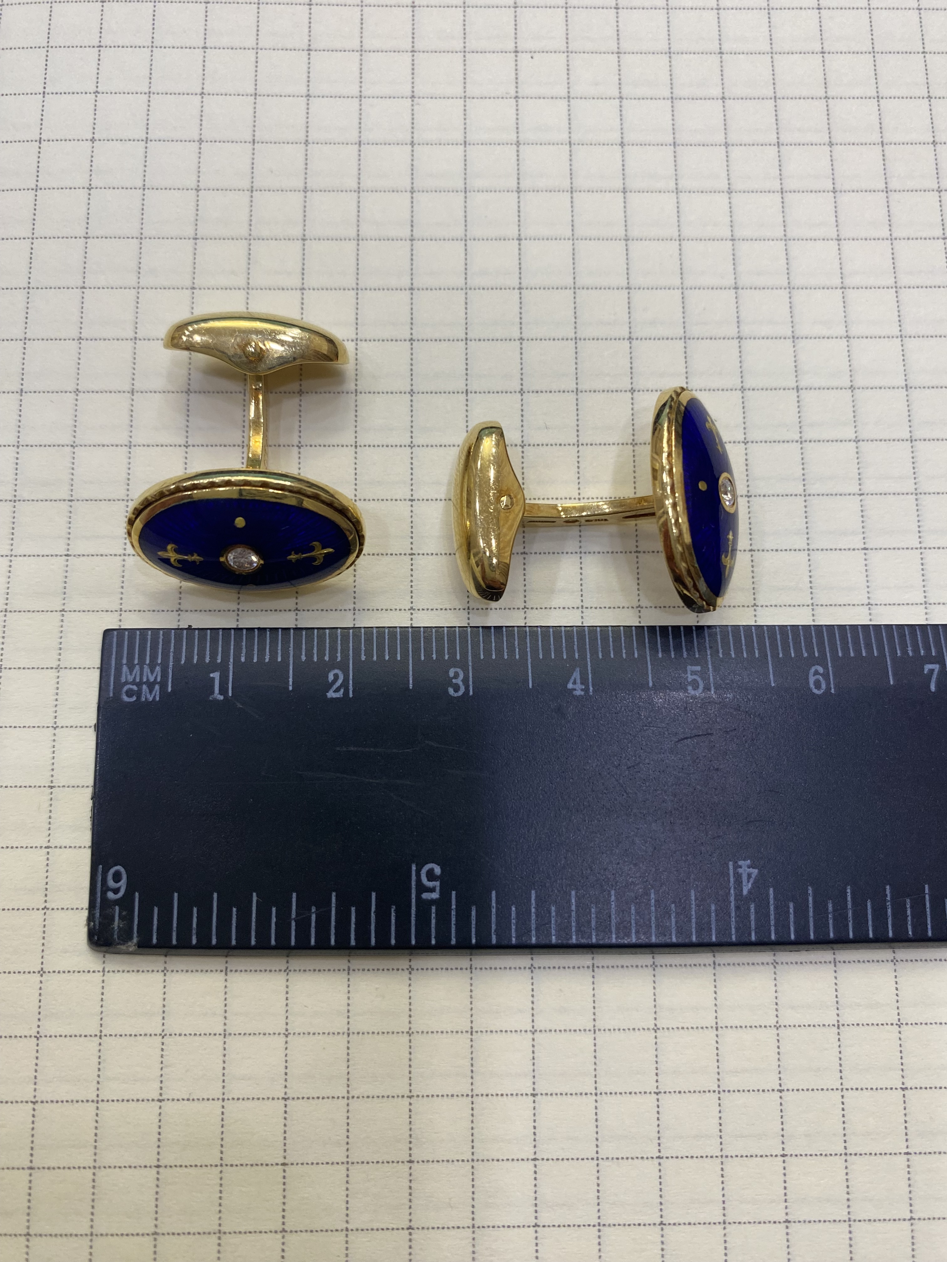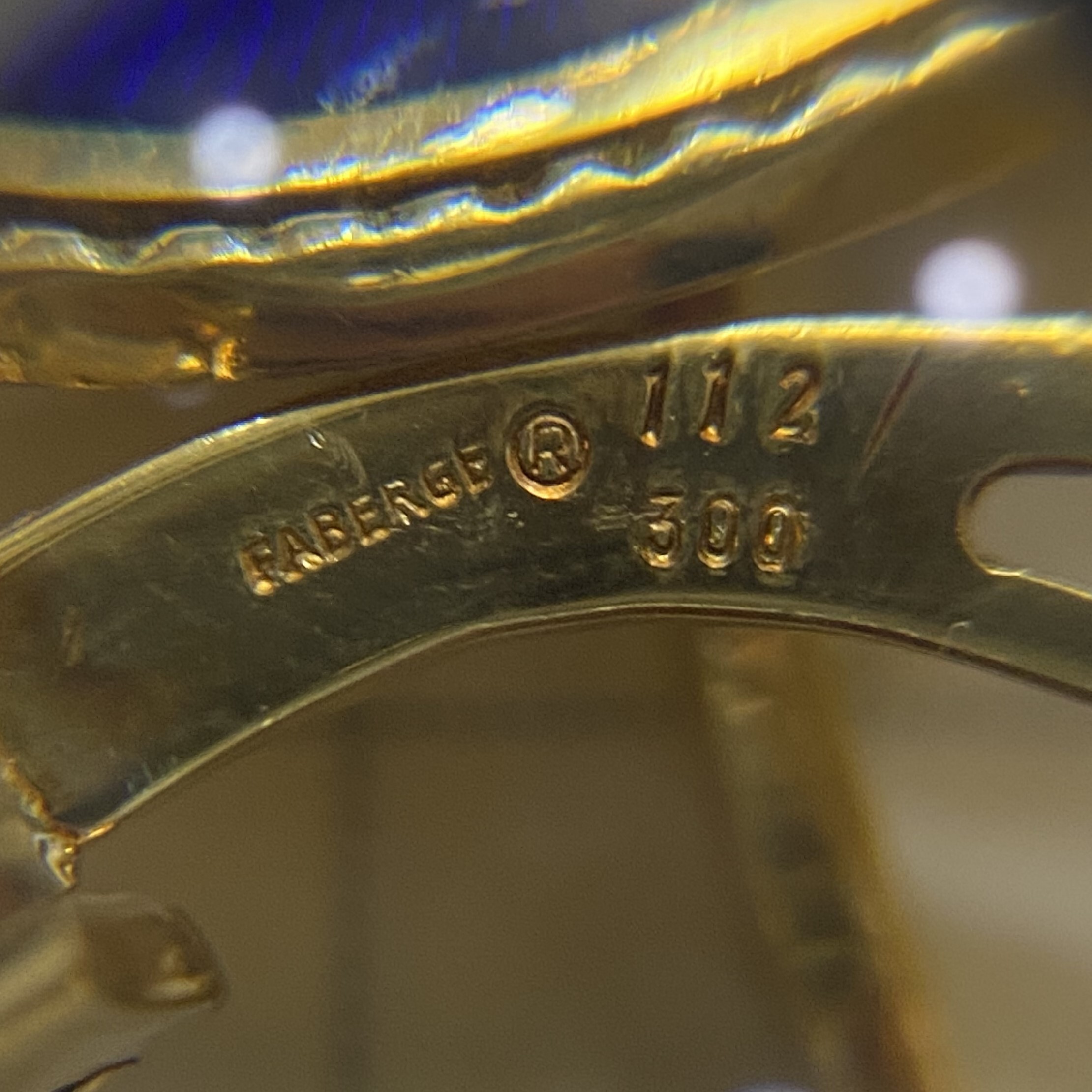 Запонки Faberge из золота 750 пробы с бриллиантами. Эмаль синего цвета, вес 19,25 г.
