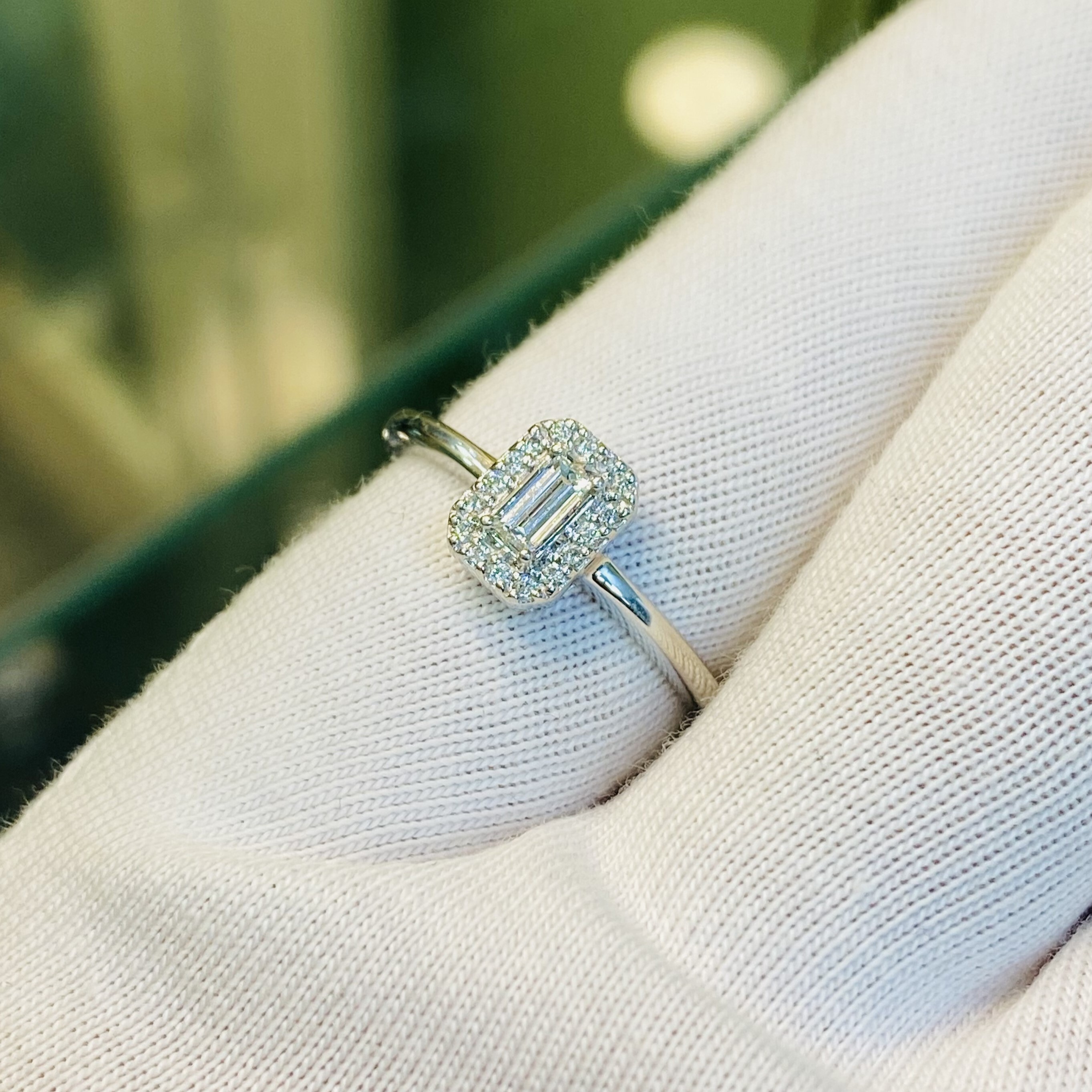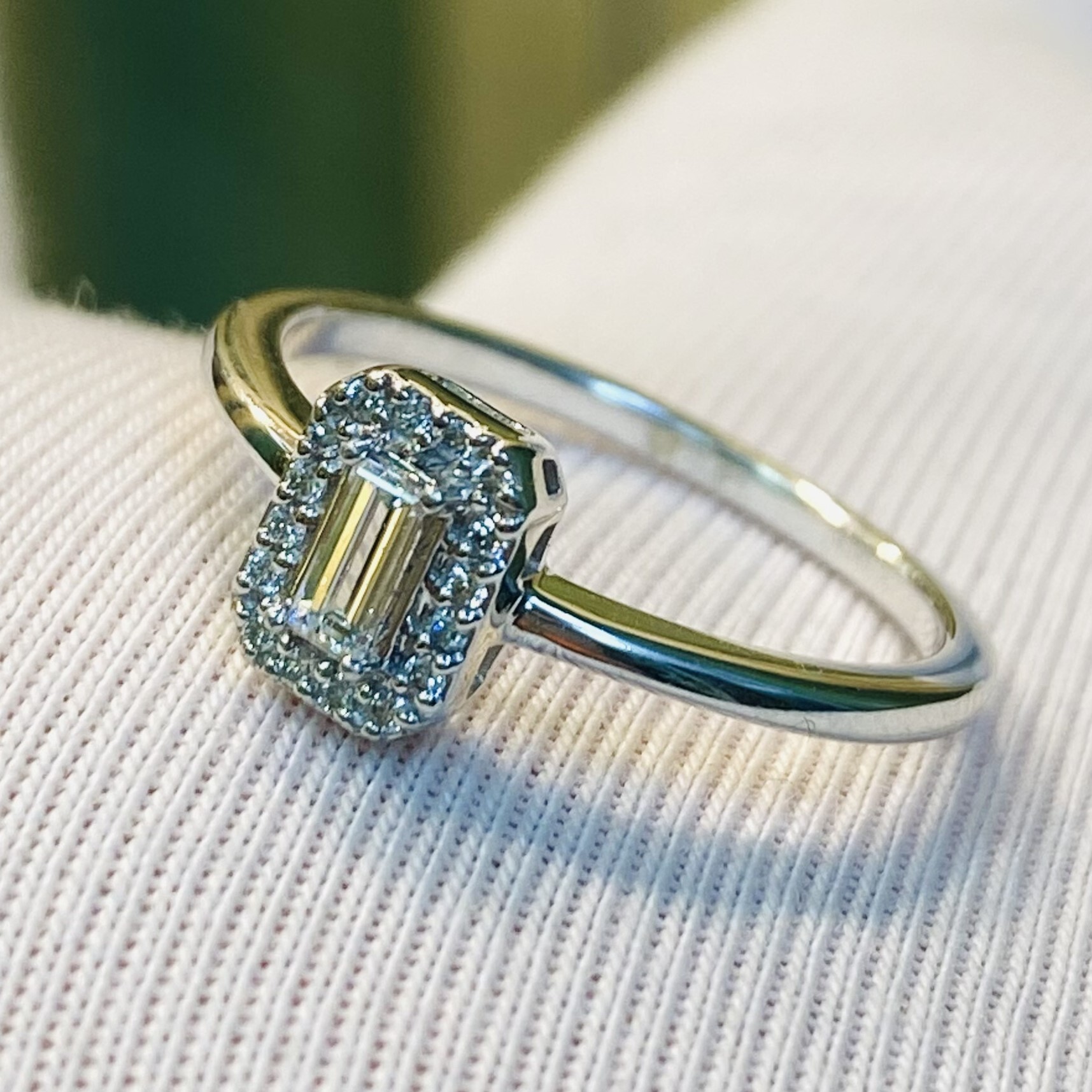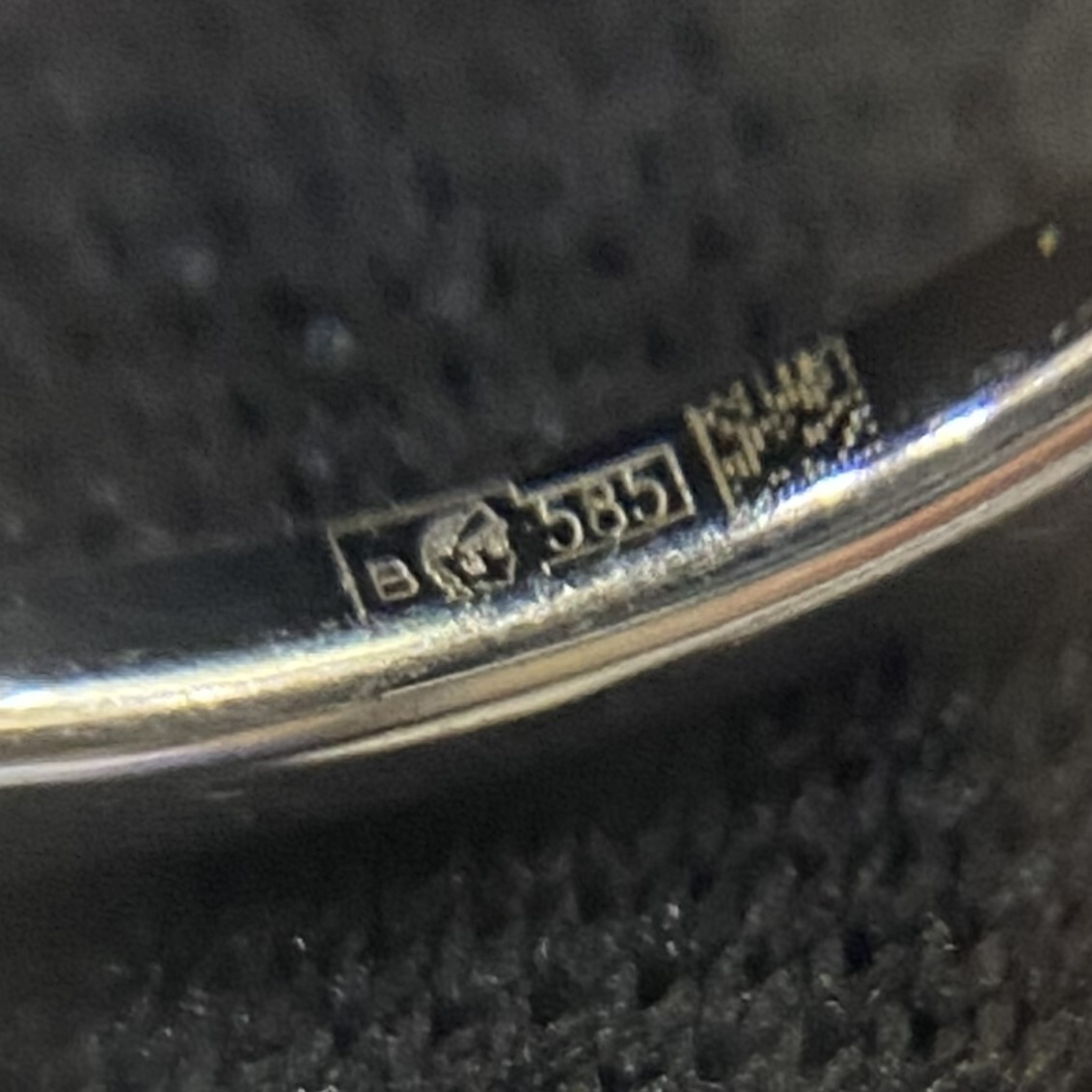 Золотое кольцо 585 пробы белого цвета с бриллиантами.