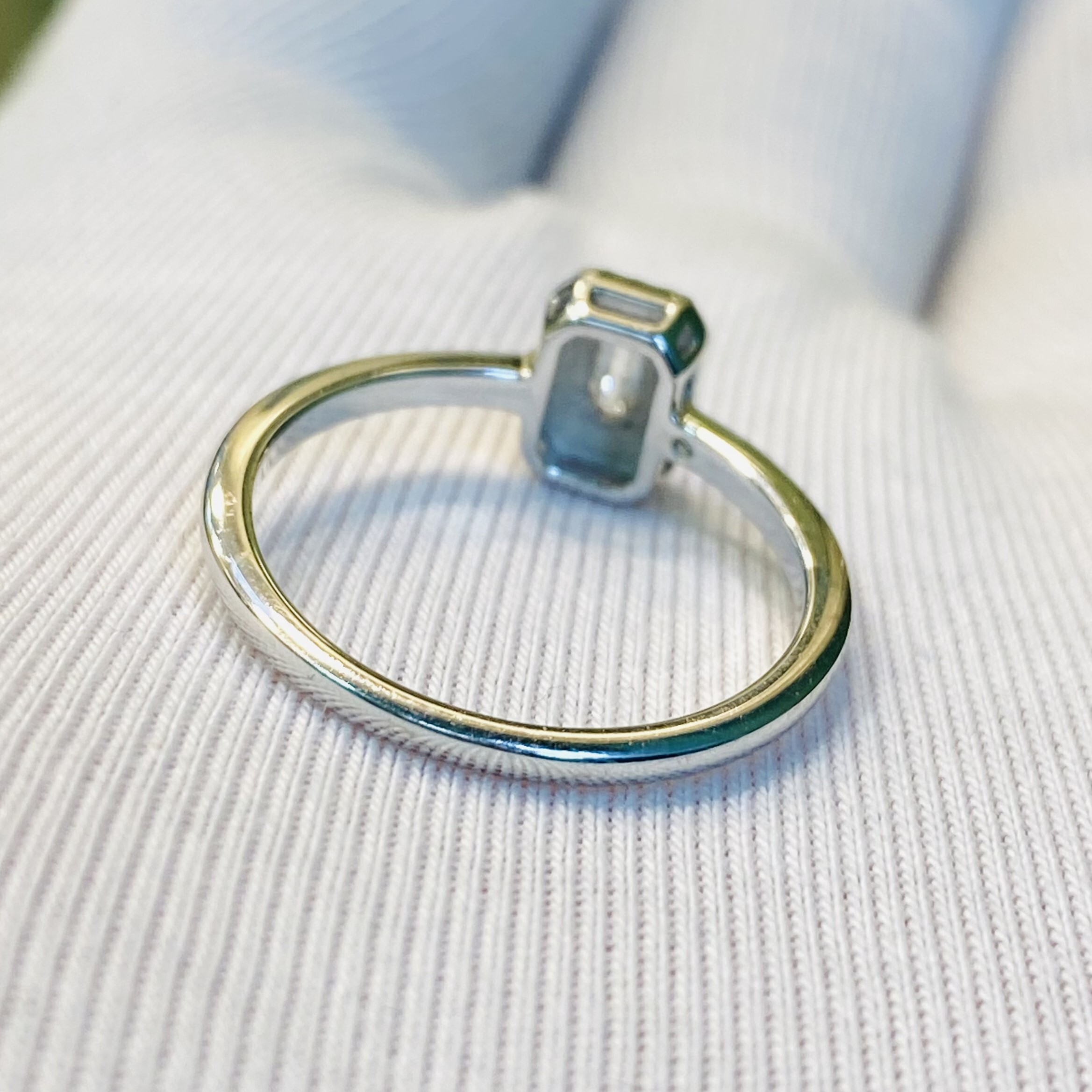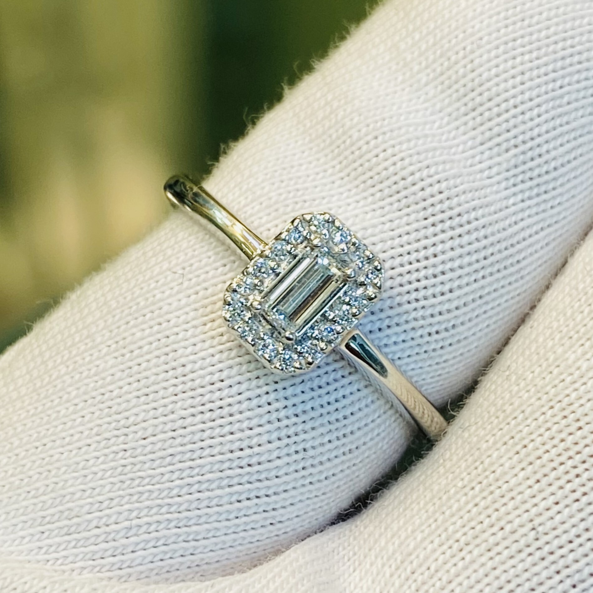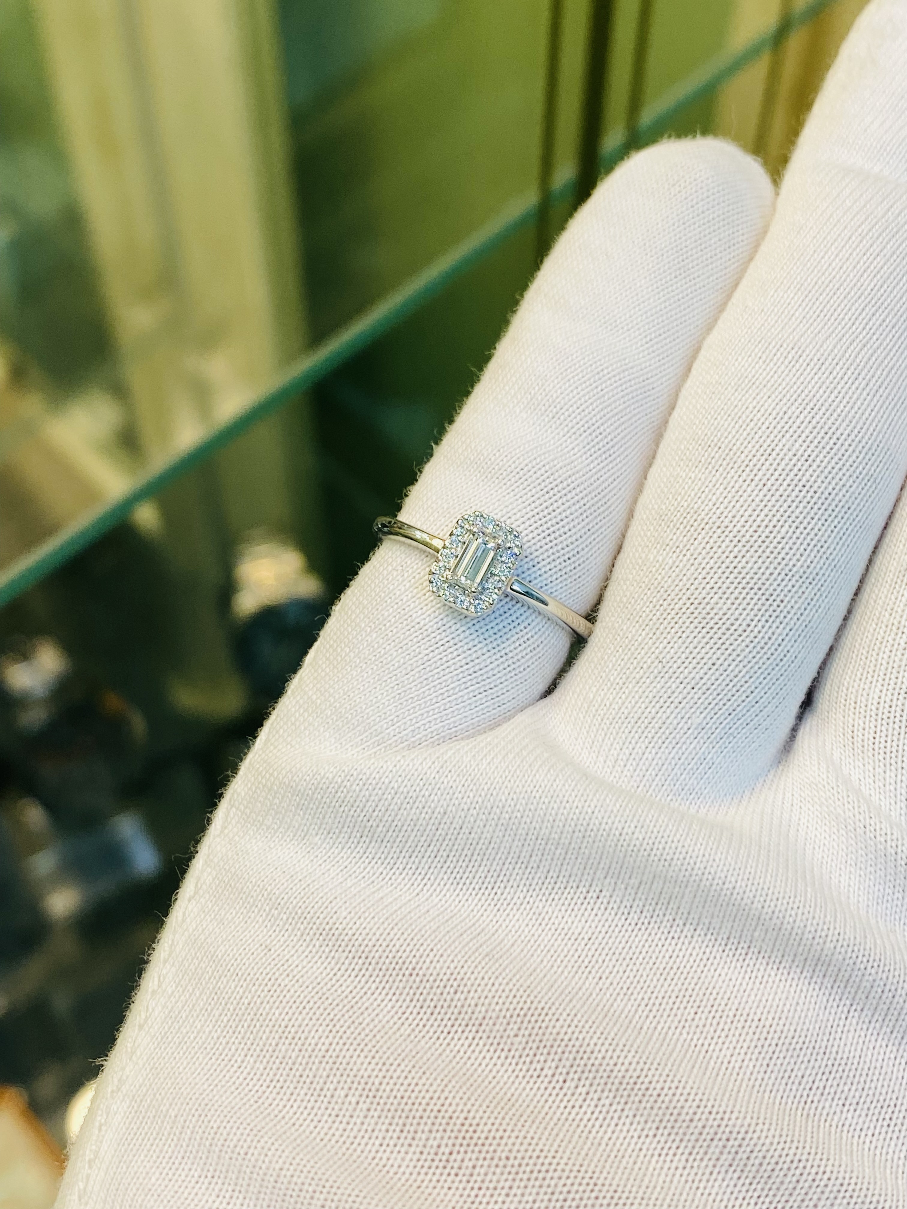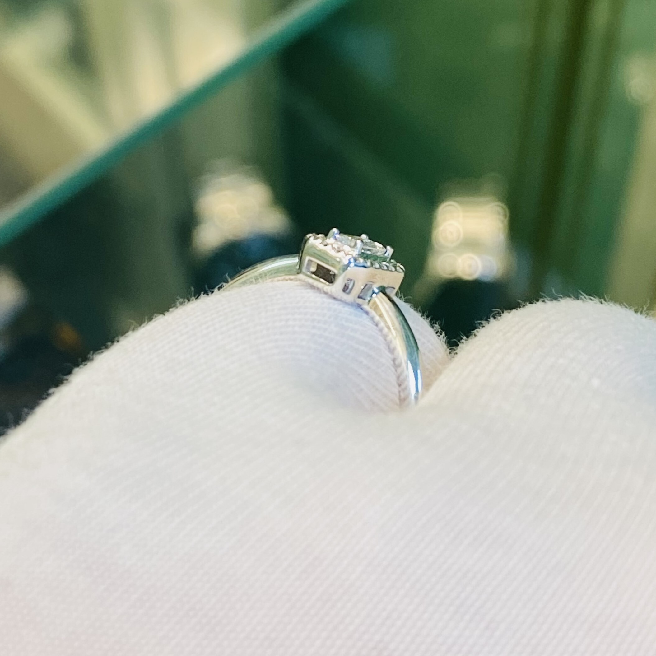 Золотое кольцо 585 пробы белого цвета с бриллиантами.